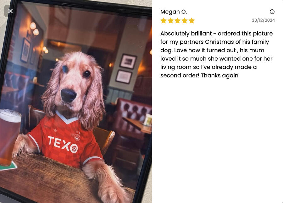 We transform your dog into a football-themed masterpiece ⚡🎨3️⃣ Secure Preview Before You Buy 🔒